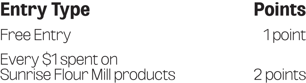 2x points for every $1 you spend on Sunrise Flour Mill: