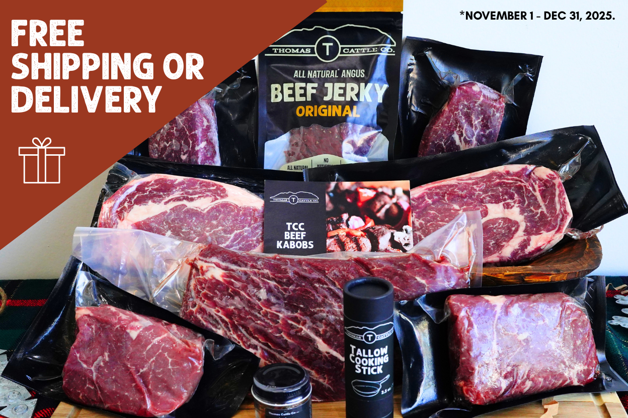 Celebrate the season with a brand-new holiday bundle from Thomas Cattle Company, created to bring the best of our ranch straight to your table (or someone else’s).