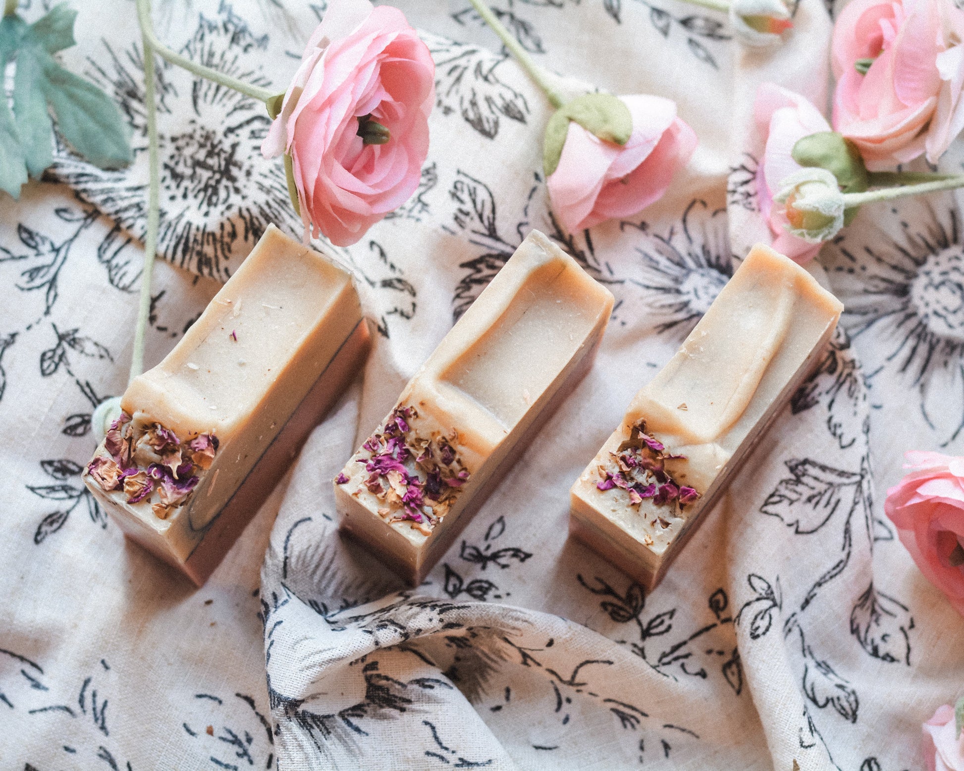 Take a step into the country where the air is sweet and flower garden calls you home. This was the inspiration behind our Country Rose goat milk soap scented with a floral geranium essential oil and the warm, vanilla-like tones of all-natural Benzoin. This soap is naturally colored with rose and white kaolin clay, topped with dried rose petals, and absolutely perfect for your shower or a Mother’s Day gift.