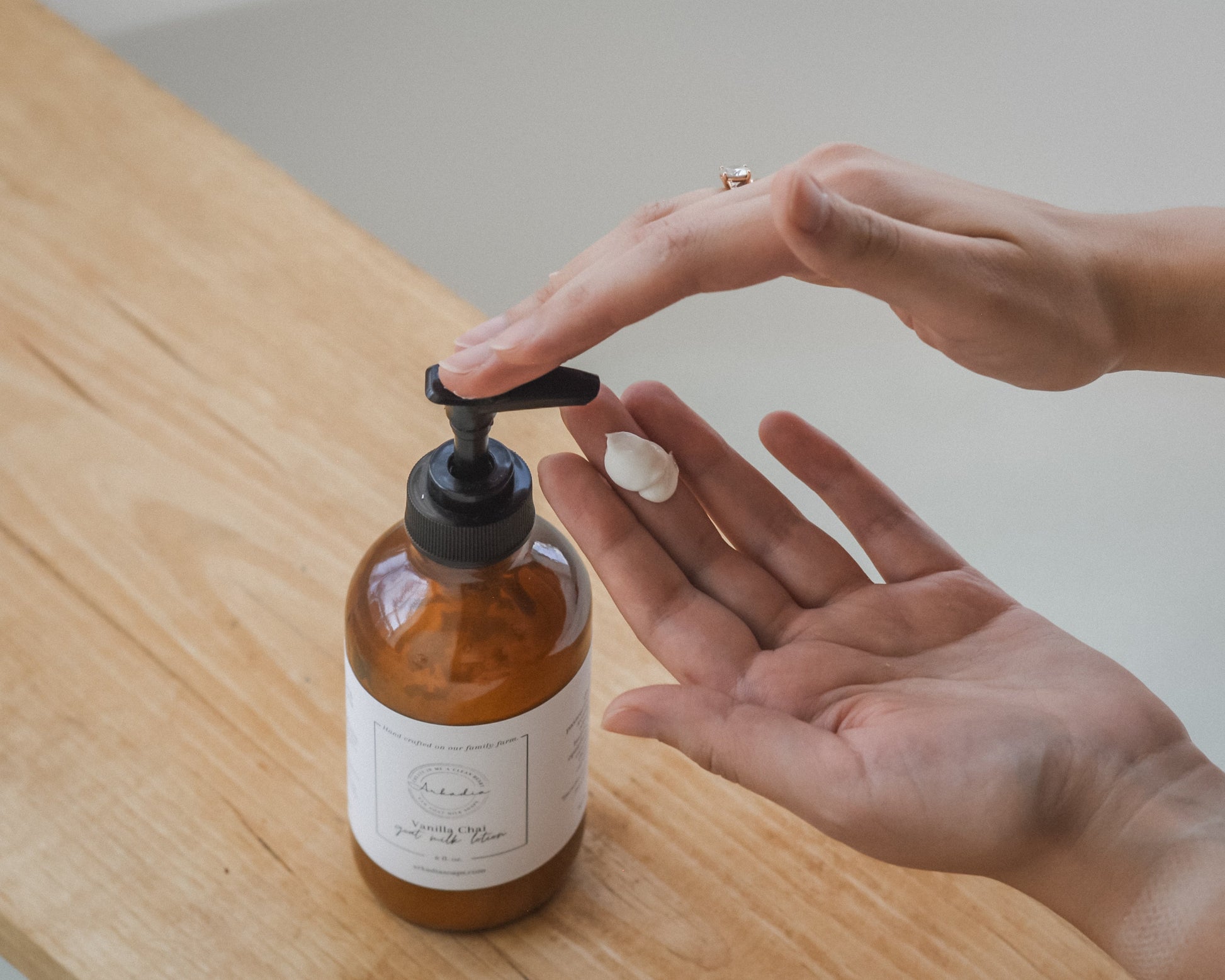 Our carefully crafted lotions are made with milk from our very own herd of goats. Additionally, they are formulated with three oils in addition to the nourishing milk; two lighter oils (almond oil, and avocado oil) to soak into your skin, and shea butter to lock in the moisture.