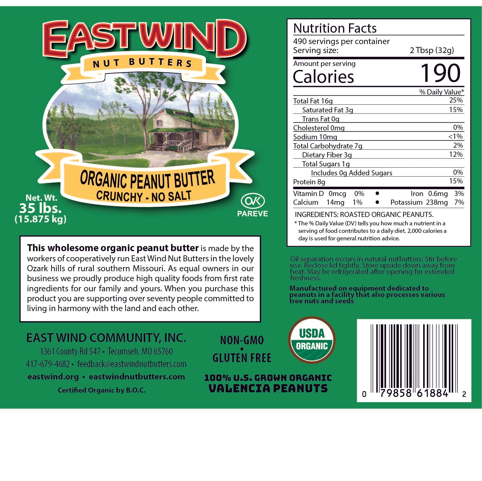 East Wind Nut Butters crafts simple, honest foods made from two ingredients or less. Since 1981, the community has milled every batch in a small scale, artisanal setting without preservatives, sweeteners, or artificial additives. Each jar reflects the work of an intentional community in the Ozarks that grows, lives, and collaborates together. By choosing East Wind, you support a cooperative way of life built on simplicity, integrity, and connection.